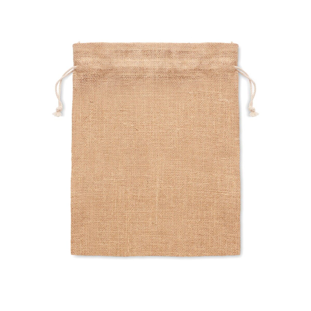 Torba prezentowa z juty JUTE MEDIUM wykonana została z wysokiej jakości naturalnego materiału, jakim jest juta, co nie tylko podnosi jej estetyczny urok, ale również sprawia, że jest trwała i odporna na uszkodzenia. Neutralny kolor i prosty design torby umożliwiają jej zastosowanie w różnorodnych sytuacjach i pasują do większości stylów ubioru.