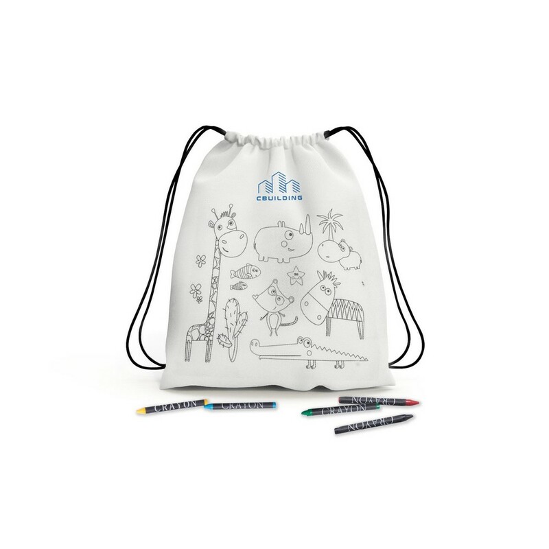 Front worka zdobi kolorowanka z motywem zwierząt, co 🎨 zachęca do spędzania czasu na kreatywnej zabawie. Zestaw zawiera także 5 kredek świecowych, które są bezpieczne i łatwe w użyciu nawet dla małych rączek. Worek wykonany jest z wysokiej jakości materiału non-woven o gramaturze 80 g/m2, co gwarantuje jego wytrzymałość oraz łatwość w utrzymaniu czystości.